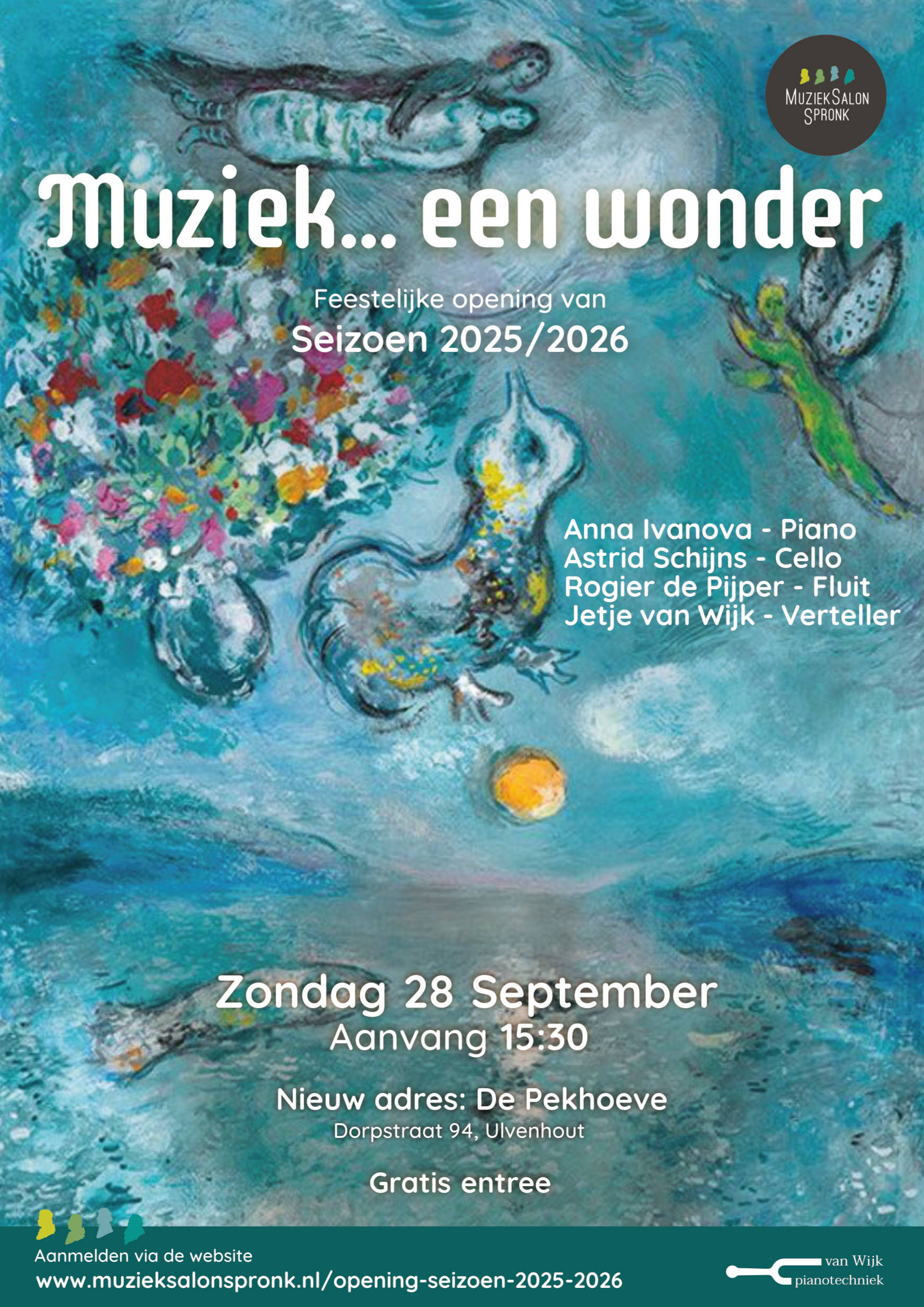Om de maand een boeiend muziekverhaal met mooie muziek beluisteren, een prikkelende beeldpresentatie ervaren en iets te weten komen over de wereld achter de muziek. Dit jaar vindt de opening van seizoen 2025-2026 plaats in de unieke Pekhoeve te Ulvenhout die voor de gelegenheid wordt omgetoverd tot een feestelijke concertzaal.